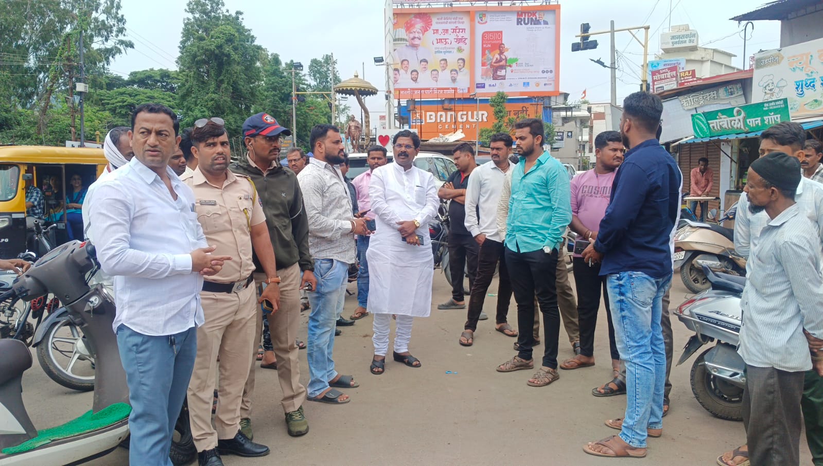 मोठी गर्दी जमल्याने पोलीसही तेथे आले. अखेर दोन्ही गटात तडजोड होऊन मोहन वनखंडे यांचे काढलेला फलक पुन्हा लावण्यात आला.