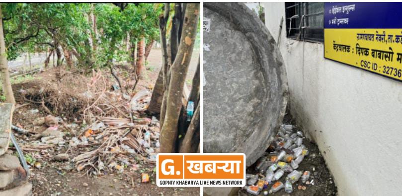 गावातील ग्रामसभेत घेतलं जाणारे ठराव फक्त कागदावरच राहत आहेत. गावात देशी दारूची खुलेआम विक्री सुरू आहे एवढच नाही तर दारुड्यांनी ग्रामपंचायत कार्यालय परिसरातच दारूचा अड्डा केला आहे की काय ? असा संतप्त सवाल काँग्रेसचे युवा नेते लखन रमेश सकट यांनी उपस्थित केला आहे. सकट यांनी ग्रामपंचायत कार्यालय परिसरात असणाऱ्या सीएससी सेंटरच्या शेजारी पाण्याच्या टाकीजवळ आणि छत्रपती शिवाजी महाराज क्रीडांगणाच्या प्रवेशाजवळच देशी दारूच्या रिकाम्या बाटल्यांचा पडलेला खच निदर्शनास आणून दिला.
