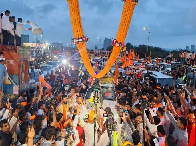 मराठा आरक्षणासाठी राज्याच्या कानाकोपऱ्यातून आलेले आंदोलक मनोज जरांगे पाटील यांच्या नेतृत्वाखाली पहाटे सव्वासहा वाजता मुंबईत दाखल झाले. वाशी टोल नाक्यावर आंदोलकांनी एक मराठा लाख मराठा, लढेंगे, जितेंगे हम सब जरांगे च्या घोषणांनी टोलनाका परिसर दणाणून गेला होता.