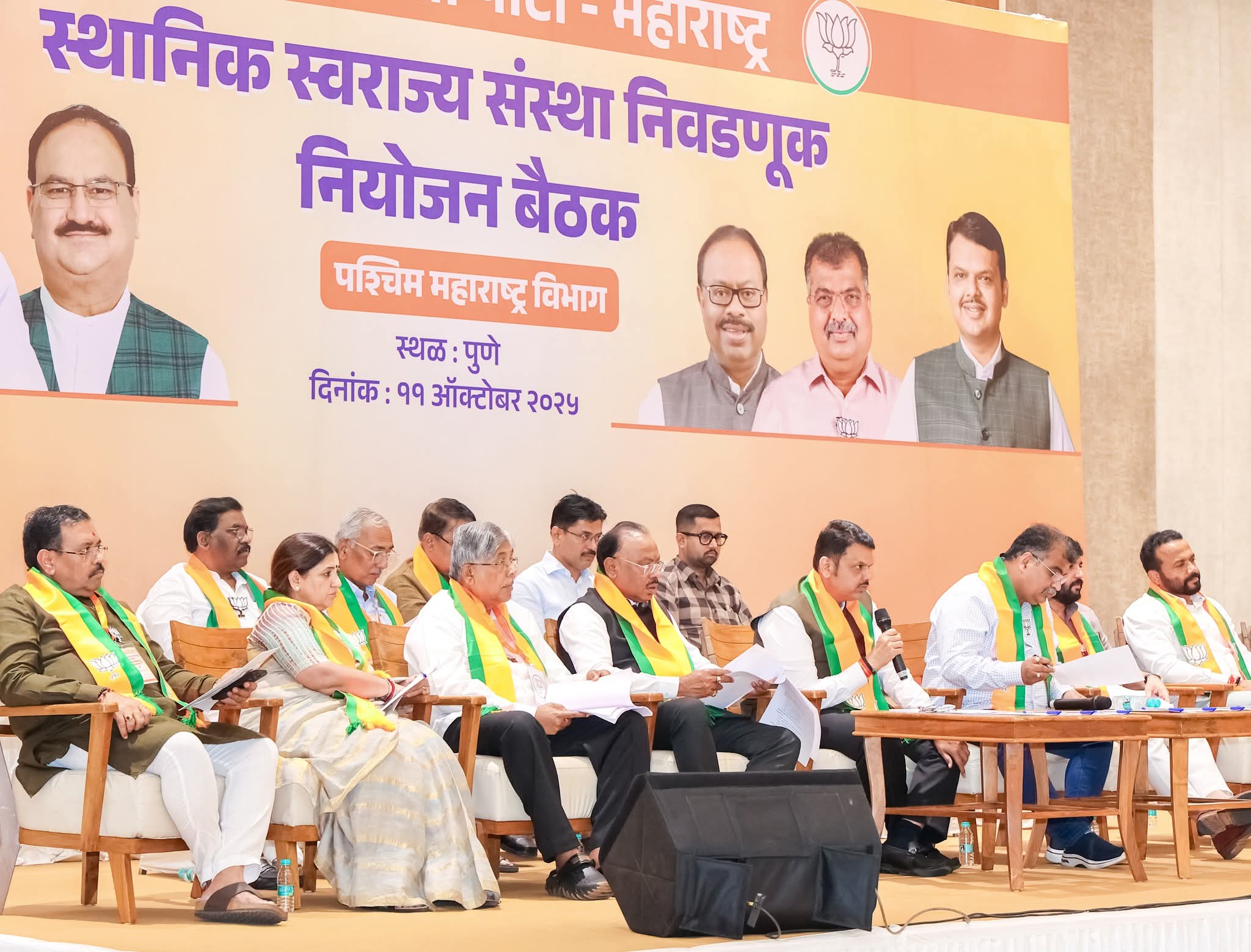 स्थानिक स्वराज्य संस्थांच्या निवडणुकीच्या तयारीसाठी मुख्यमंत्री देवेंद्र फडणवीस यांनी आज (ता. ११) पुणे, सोलापूर, सांगली, सातारा आणि कोल्हापूर या पाच जिल्ह्यातील पदाधिकाऱ्यांची बैठक घेतली. त्यानंतर त्यांनी माध्यमांशी संवाद साधला.