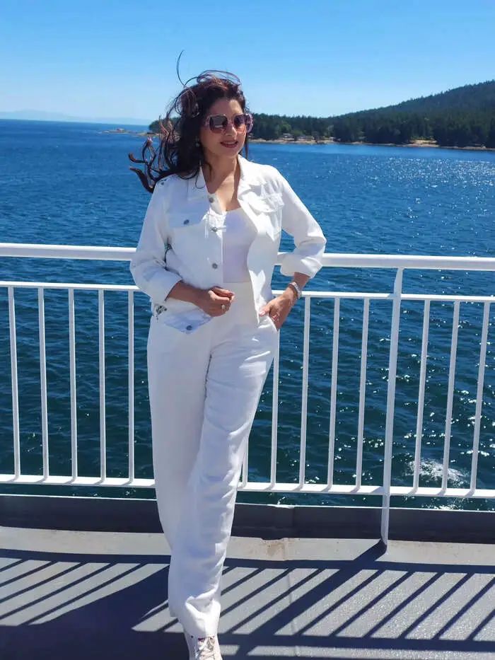 हा पोशाख तिला खूपच सुंदर दिसत आहे. निळ्या पाण्यासमोर उभे राहून, तिच्या वाऱ्यात वाहणाऱ्या केसांनीही अनेकांचे मन जिंकले आहे. तिचे ते सौंदर्य पाहून , तिने तिचे वय अर्धे केले आहे असे म्हणणे चुकीचे ठरणार नाही.