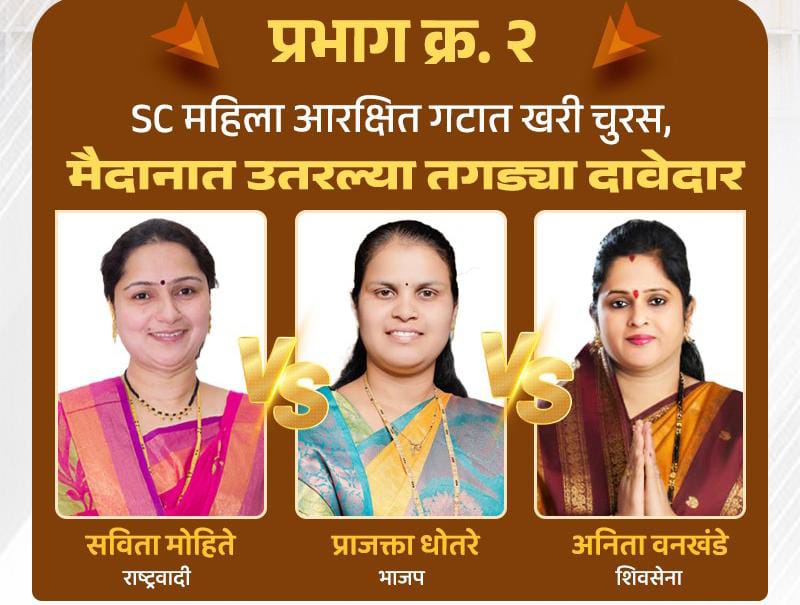 प्रभाग क्रमांक २ मधून एस.सी महिला आरक्षित गटात खरी चुरस आहे. यामध्ये होणारी लढत पाहण्यासारखी असल्यामुळे सर्वच नेत्यांनी आपली ताकद पणाला लावली आहे.