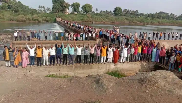 सांगली; खबऱ्या प्रतिनिधी: सांगलीच्या कृष्णा नदीवरील बंधारा हटविण्यास स्थानिक पर्यावरण प्रेमींनी आज (दि.५) विरोध दर्शविला. बंधारा बचावासाठी सांगलीकर एकवटले असून, त्यांनी बंधाऱ्यावर मानवी साखळी करत विरोध दर्शविला आहे.