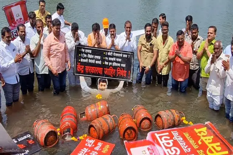 सर्वसामान्य जनतेच्या आवाक्याबाहेर महागाई गेली आहे. याच्या निषेधार्थ मदनभाऊ युवा मंचने आज, शुक्रवारी अनोखे आंदोलन केले. कृष्णा नदीत सिलिंडर अर्पण करून केंद्र शासनाचा निषेध केला.