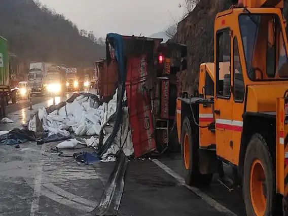 सुदैवाने यात कोणतीही जीवितहानी झाली नसून, चालक आणि क्लिनर किरकोळ जखमी झाले आहेत.
