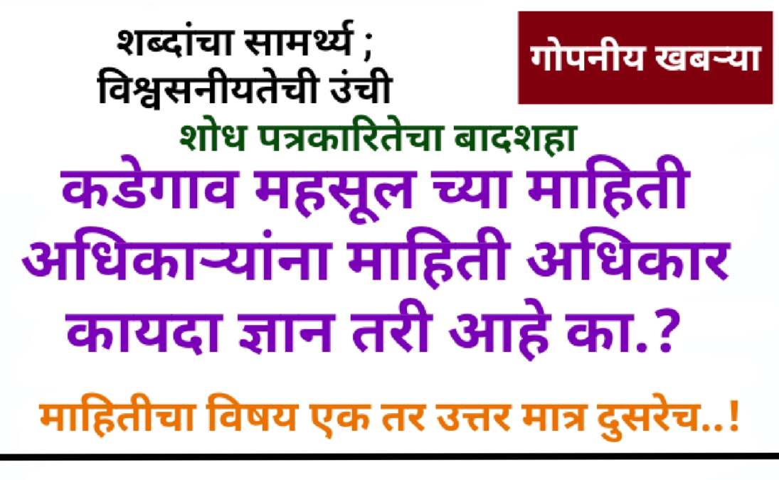 कडेगाव:- कडेगाव तहसील कार्यालयातून माहितीच्या अधिकाराला राजरोसपणे फाट्यावर मारून माहिती मागणी करणाऱ्या लोकांना उडवाउडवीची किंवा थातूरमातूर उत्तरे देऊन धुडकावून लावलं जात आहे. याचा पुन्हा एकदा प्रत्यय आल्याने तहसील कार्यालयातील माहिती अधिकाऱ्यांनी माहिती अधिकार कायद्याचा नक्की अभ्यास तरी आहे का? असा सवाल उपस्थित केला जात आहे. माहिती अधिकाराचे ज्ञान असणारा कोणताही अधिकारी अशा प्रकारची आक्षेपार्ह लेखी उत्तरे देणार नाही असं जाणकार व्यक्तींकडून बोललं जात आहे. कडेगाव तहसील कार्यालयातील हा भोंगळ कारभार नक्की कोणी थांबवणार आहे की नाही ? असा प्रश्न आता सर्वसामान्य जनतेला पडला आहे.