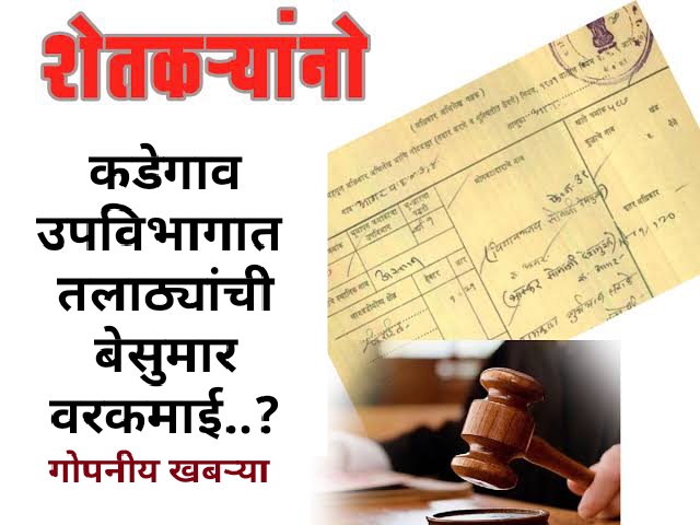 कडेगाव :- कडेगाव उपविभागातील काही तलाठयांनी सध्या दुबार नोंदीचा धडाका सुरु केला आहे. सध्या तरी पलूस तालुक्यातील दोन आणि कडेगाव तालुक्यातील दोन तलाठी गोपनीय खबऱ्याच्या रडारवर असून या तलाठयांनी प्रथम दर्शनी कोणतीही खात्री न करता बेकायदेशीर पणे दुबार नोंदी केल्याचे निष्पन्न झालं आहे. दुबार नोंद धरण्याचा कोणताही अधिकार तलाठी यांना नसून आपल्या अधिकाराच्या बाहेरील काम करण्याच धाडस या तलाठयांनी केवळ आर्थिक अमिषापोटी केल असल्याचे स्पष्ट होतं आहे मात्र या भ्रष्ट तलाठयांचे वर कोणाचे नियंत्रण आहे कि नाही? असा सवाल आता उपस्थित केला जात आहे.