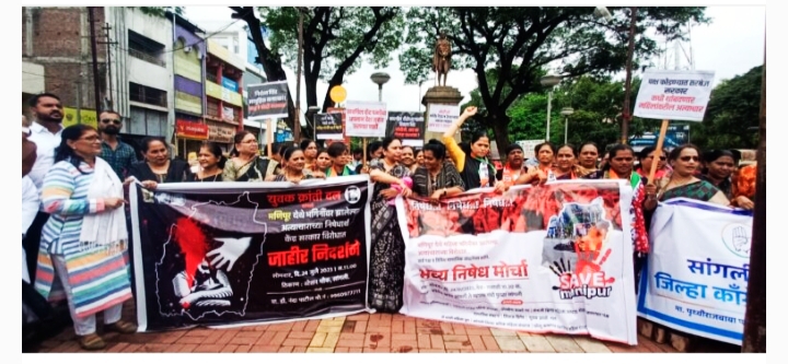 सांगली (प्रतिनिधी) : मणिपुरात माजी सैनिकाच्या पत्नीची नग्न धिंड काढली जाते, महिलांवरील अत्याचार वाढत चालले आहेत, असे सत्य स्वीकारण्याची हिम्मत मोदींच्या छप्पन इंच छातीत नाही, मोदींना मणिपूर घटनेचे उत्तर देशाला द्यावेच लागेल, असे मत व्यक्त करीत विविध महिला संघटनांनी कॉंग्रेसभवन ते गांधी पुतळा मोर्चा काढला घोषणाबाजी करून केला निषेध व्यक्त केला.