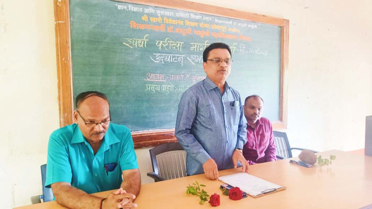 मिरज प्रतिनिधी / मिरजेतील शिक्षणमहर्षी डॉ. बापूजी साळुंखे महाविद्यालय मिरज येथे स्पर्धा परीक्षा मार्गदर्शन केंद्राचे उद्घाटन करण्यात आले. यावेळी प्राचार्य डॉ. एस. बी.कुरणे अध्यक्षस्थानी होते. स्पर्धा परीक्षा देण्यासाठी इयत्ता अकरावी पासून तयारी करण्याची गरज असल्याचे व विद्यार्थ्यांसाठी सर्व भौतिक सुविधा उपलब्ध करून देण्याचे मत प्राचार्य कुरणे यांनी मांडले. प्रमुख पाहुणे म्हणून प्रा. सचिन माळी (संस्थापक भगतसिंह अकॅडमी) यांना निमंत्रित केले होते. प्रा.माळी यांनी पोलीस भरती व आर्मी भरती याविषयी मार्गदर्शन केले.