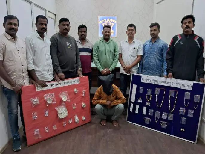 यल्लाप्पा हा पिशवी घेऊन उद्यानासमोर उभा असताना पोलिसांनी त्याला ताब्यात घेतले. त्याची अंगझडती घेतली असता पिशवीत सोन्या-चांदीचे दागिने मिळून आले. पोलिसांनी दागिन्याबाबत विचारणा करता त्याने उडवाउडवीची उत्तरे दिली. पथकाने त्याला विश्वासात घेऊन चौकशी केली असता त्याने घरफोडीची कबुली दिली. पथकाने त्याच्याकडून ६ लाख किंमतीचे १०० ग्रॅम सोन्याचे दागिने, ७३ हजार रुपये किंमतीचे एक किलो चांदीचे दागिने असा ६ लाख ७३ हजार रुपयांचा मुद्देमाल जप्त केला. त्याला मिरज ग्रामीण पोलिसांकडे वर्ग करण्यात आले.