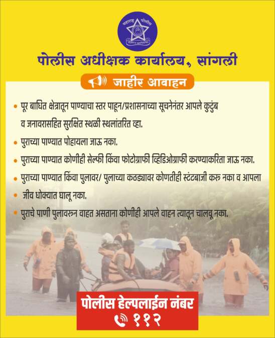 सांगली येथे पावसामुळे आपत्कालीन परिस्थिती निर्माण झाली आहे. सांगली जिल्हाधिकारी यांनी केलेल्या विनंतीनुसार शुक्रवारी (ता. २६) १०० जणांचा समावेश असलेल्या पथकाला रवाना करण्यात आले आहे. यामध्ये लष्कराचे जवान, वैद्यकीय पथक आणि अभियंते यांचा समावेश आहे.