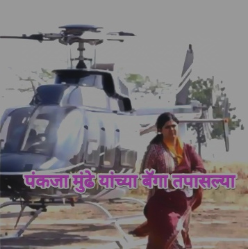 भाजपच्या स्टार प्रचारक पंकजा मुंडे यांच्या हेलिकॉप्टरची देखील तपासणी करण्यात आली. सांगली जिल्ह्यातील मिरज मतदार संघातील बेडग गावामध्ये भाजप आमदार सुरेश खाडे यांच्या प्रचारार्थ आयोजित सभेसाठी त्या हेलिकॉप्टरने दाखल झाल्या. यावेळी निवडणूक आयोग पथकाकडून पंकजा मुंडेंच्या हेलिकॉप्टरमधील बॅगांची देखील तपासणी करण्यात आली आहे. पंकजा मुंडे या सांगलीच्या मिरज तालुक्यातील बेडग येथे हेलिकॉप्टरने आल्या होत्या.
