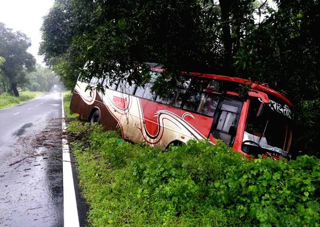 मुंबई गोवा महामार्गावर लांजा तालुक्यातील अंजणारी घाटात आराम बसचे ब्रेक निकामी झाल्याने बस पलटी होऊन अपघात झाला. सुदैवाने या अपघातात बस चालक किरकोळ जखमी झाला असून अन्य प्रवासी सुखरूप आहेत.सध्या अंजणारी घाटात चौपदरीकरणाचे काम सुरू आहे. मुंबईहून ग्लोबल ट्रॅव्हल्स ही खासगी बस २५ प्रवाशांना घेऊन गोव्याकडे जात असताना आंजणारी घाटीत या लक्झरी बसचे ब्रेक निकामी झाल्याने भांबावलेल्या चालकाने गाडी कंट्रोल करण्याचा खूप प्रयत्न केला. परंतु रस्त्याच्या कडेला असलेल्या एका दगडावर जाऊन बस आदळल्याने रस्त्यातच ही बस पलटी झाली.