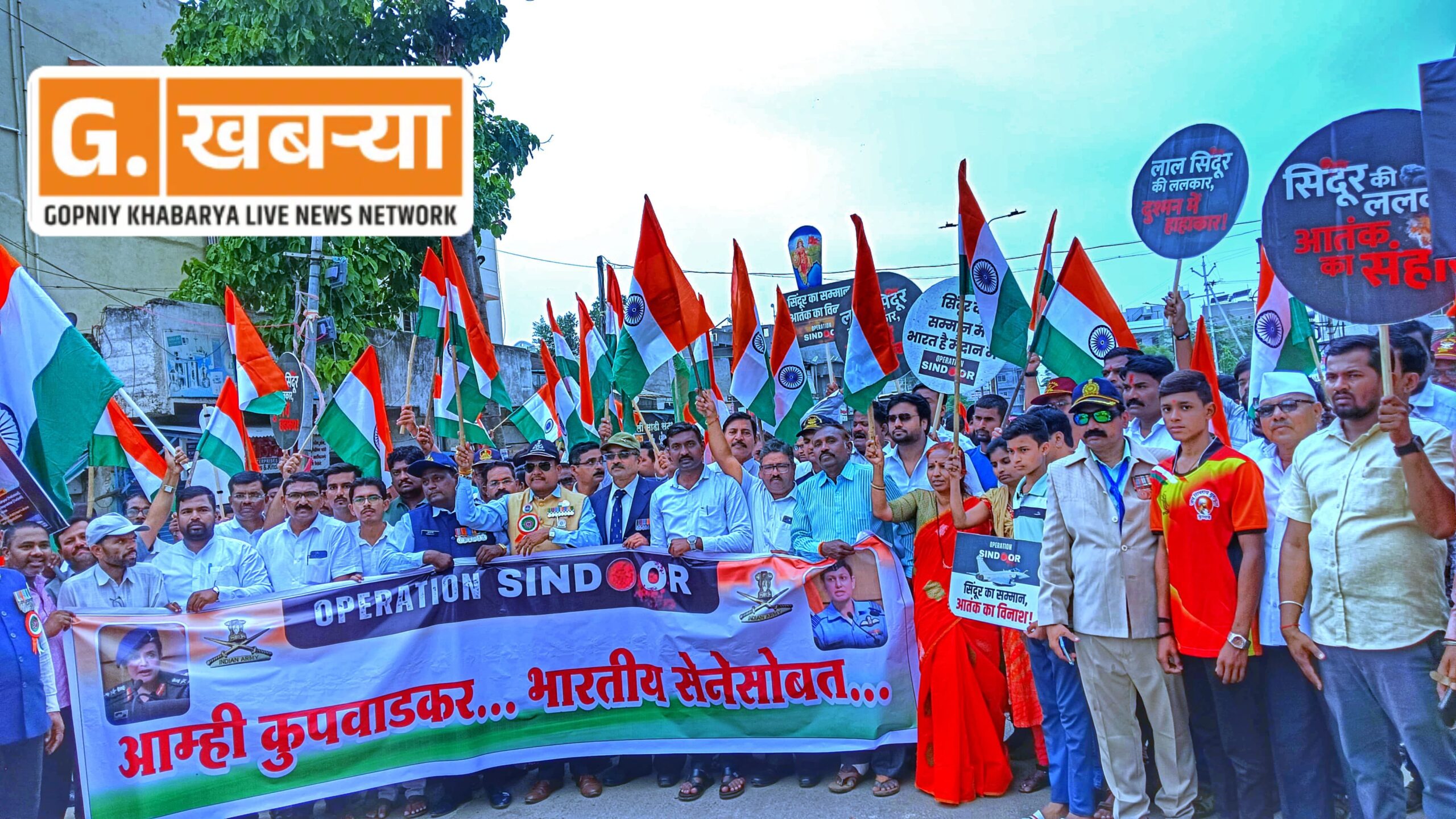 कुपवाड प्रतिनिधी | गोपनीय खबऱ्या – पहलगाम दहशतवादी हल्ल्याच्या बदल्यात भारतीय सेनेने केलेल्या ‘ऑपरेशन सिंदूर’मध्ये तीनही सैन्य दलांच्या शूर कामगिरीच्या गौरवार्थ,त्यांचा सन्मान करण्यासाठी त्यांच्याबद्दल कृतज्ञता व्यक्त करण्यासाठी, कुपवाड शहरात मंगळवारी सकाळी प्रमुख मार्गावरून सर्वपक्षीय तिरंगा पदयात्रा काढण्यात आली. या तिरंगा यात्रेत माजी सैनिक संघटना, शहरातील विविध संघटना सर्व पक्षीय संघटना सहभागी झाल्या होत्या.या रॅलीत माजी सैनिक, युवक, युवती,महिला,ज्येष्ठ नागरिक यांनी सहभाग घेतला.